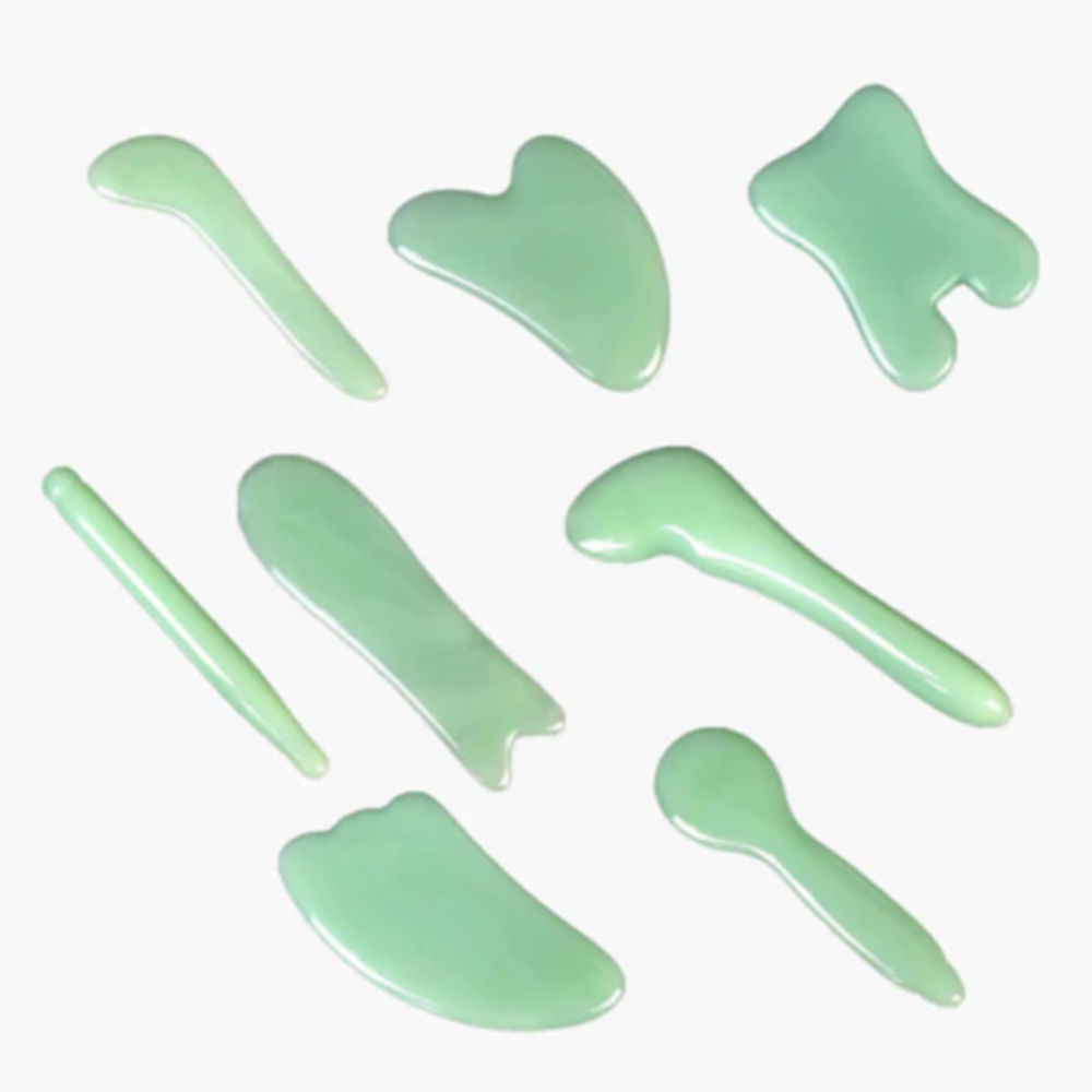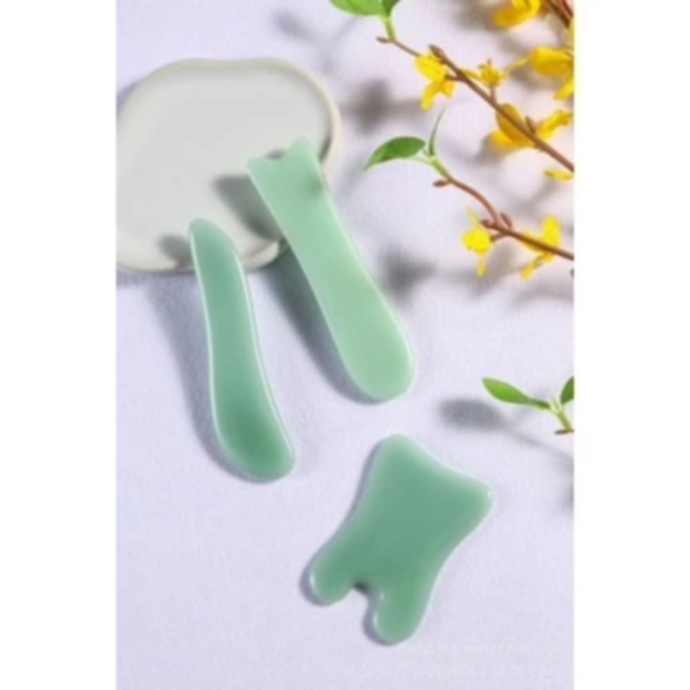 這款玉石刮痧板採用天然材質打造,質感細緻溫潤,適合日常臉部與眼周推按,